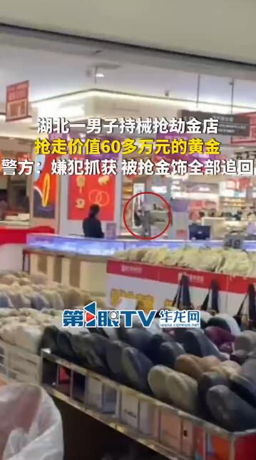 湖北一男子持械抢劫金店,抢走价值60多万元的黄金!警方通报:嫌犯抓获,被抢金饰全部追回