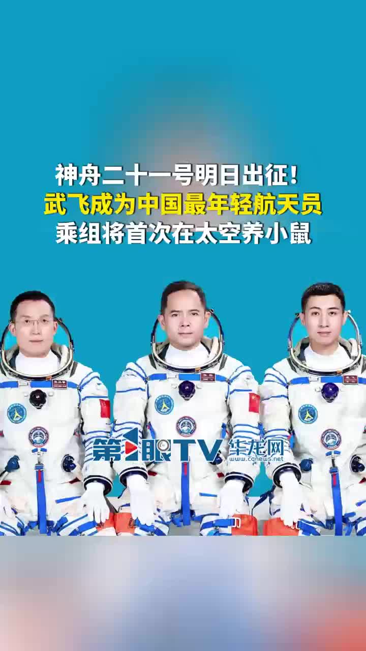 神舟二十一号明日出征!武飞成为中国最年轻航天员,乘组将首次在太空养小鼠。