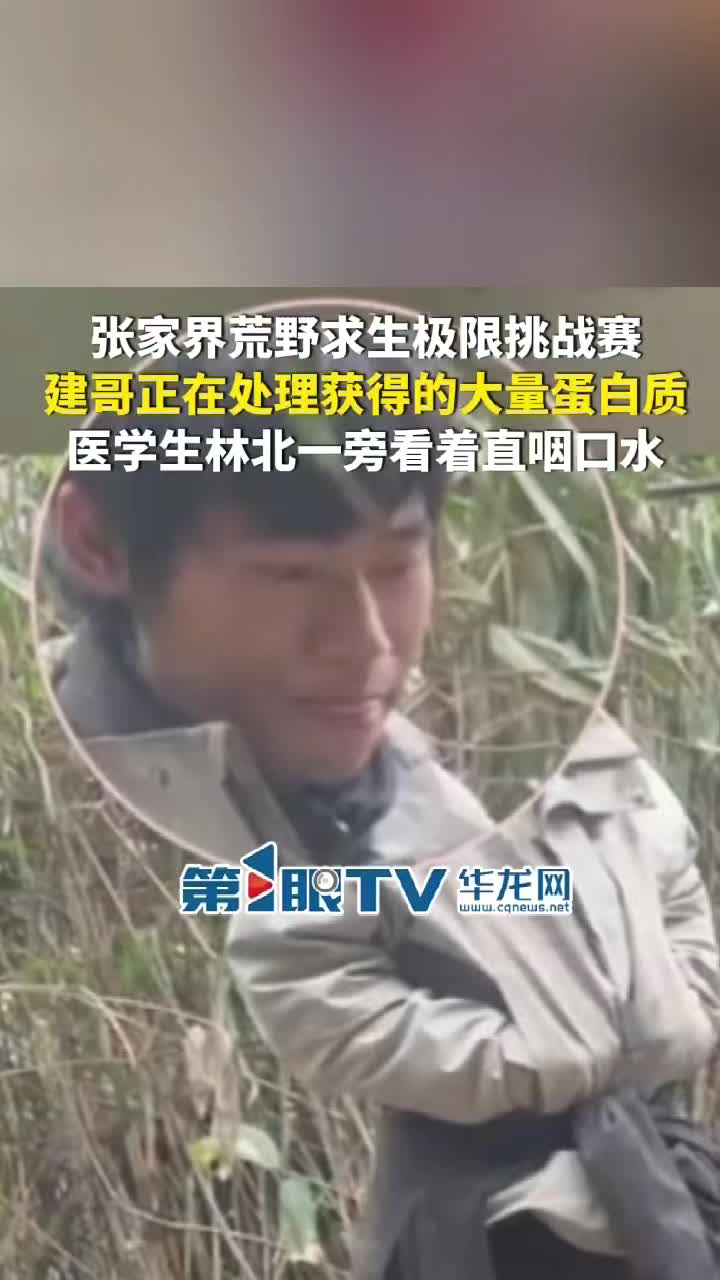 张家界荒野求生极限挑战赛,建哥正在处理获得的大量蛋白质,医学生林北一旁看着直咽口水!网友:林北馋得只能哐哐砍柴。