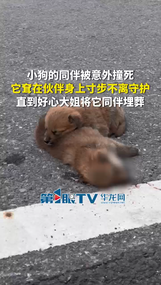 小狗的同伴被意外撞死,它寸步不离守护一个多小时,直到好心大姐将它同伴埋葬。